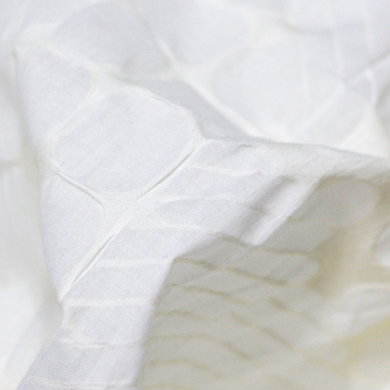 泡泡纱是呈泡状起绉的棉制印染品。有漂白、素色、印花和色织彩条等多种。穿着透气舒适,洗后不需熨烫,宜用作童装、女衫、衣裙、睡衣等。纱支较粗的泡泡纱可作床罩,窗帘等。